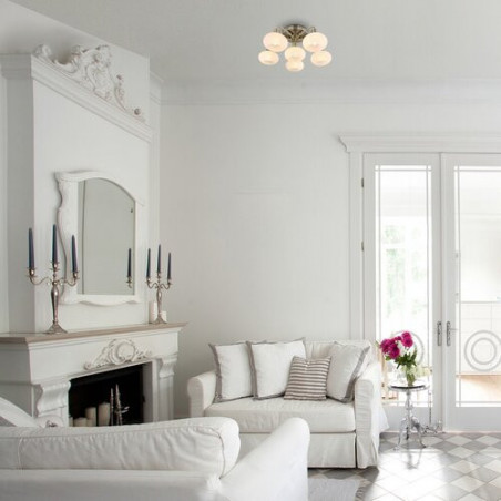 Lampa sufitowa Sorina jest idealnym rozwiązaniem zarówno do salonu jak i pokoju do pracy. Jej antyczny mosiądzowy kolor doskonale komponuje się z różnymi aranżacjami wnętrzowymi. Ponadto, materiały użyte do produkcji - metal oraz szkło - zapewniają trwałość i wysoką jakość wykonania.